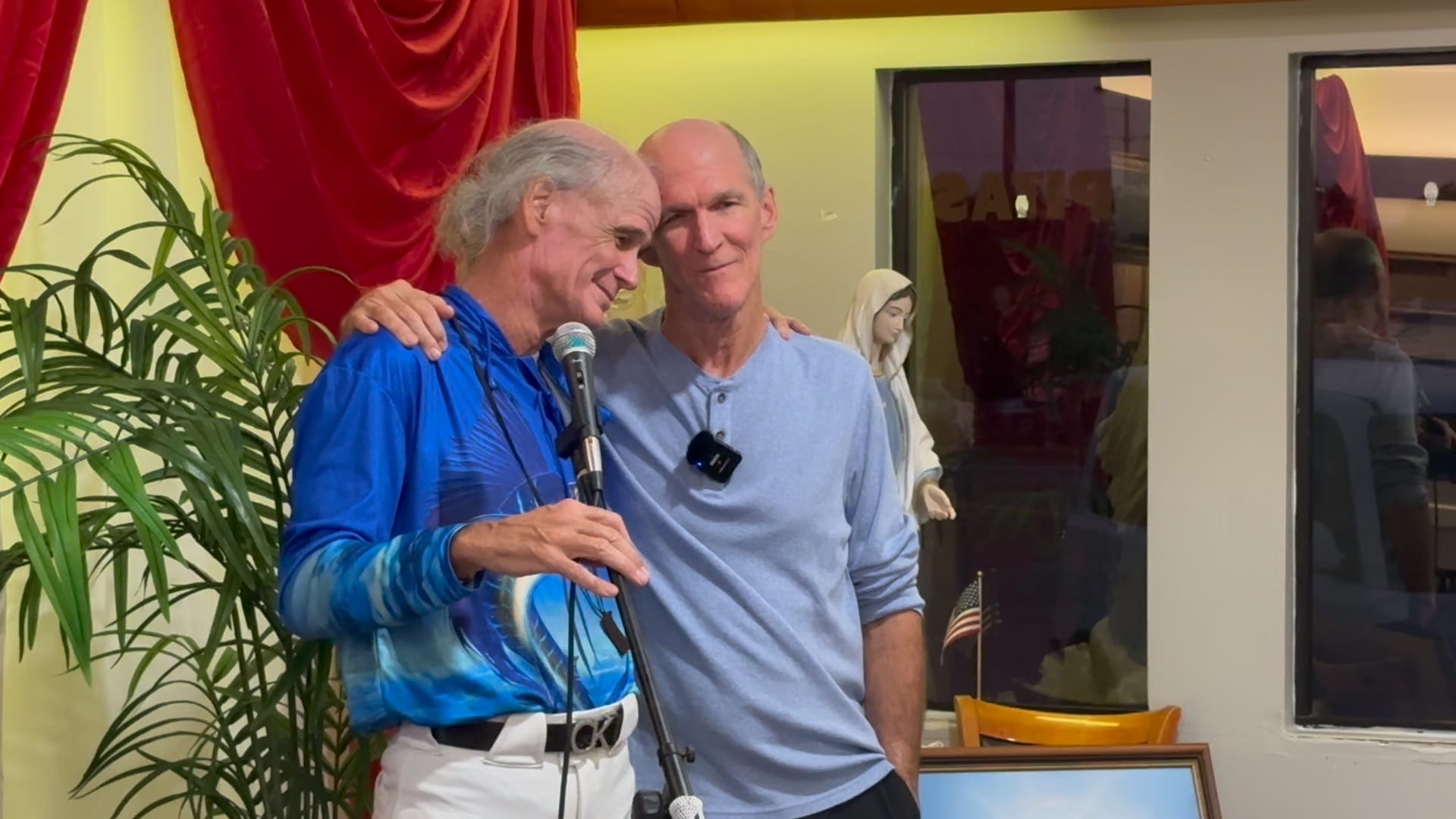 His brother Tom moved in a different direction. In a testimony that anchored the night, he explained that after leaving home, he walked away from faith and built a life apart from it. He later married his wife Vicky, and together they lived with no intention of returning to the faith of their upbringing.